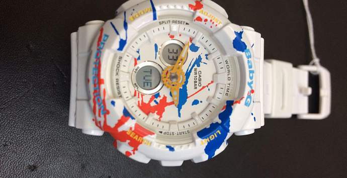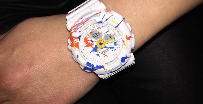 Компания Сasio BABY-G представляет новую коллекцию Splatter Pattern на базе модели BA-120 ,которые отображают современное уличное искусство. Коллекция представлена в черном и белом цветах с имитацией брызг краски на корпус, ремешок и циферблат.Такая раскраска часов придаст вашему образу игривое настроение.