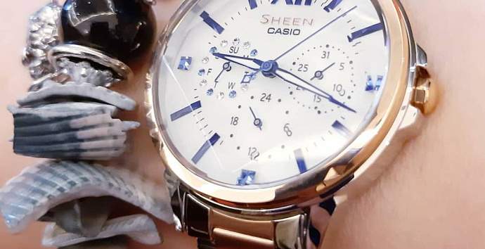 Компания Casio выпустила новые модели женской коллекции SHEEN SHE- 3056. Часы водонепроницаемы до 5 Бар, отображают дату и день недели. Циферблат украшен кристаллами Swarovski, что делает часы еще более привлекательными, а фон циферблата выполнен в перламутровых переливающихся тонах.Браслет можно найти на любой вкус: из нержавеющей стали или кожаный. Необрит Специальное покрытие обеспечивает длительное послесвечение в темноте даже после кратковременного нахождения на свету.Made with SWAROVSKI ELEMENT На корпусе часов используются SWAROVSKI ELEMENTS,которые добавляют часам неповторимое сияние.IP-покрытие Покрытие является тонкой пленкой, которая наносится в вакууме. Данный вид покрытия обеспечивает защиту ваших часов от истирания и воздействия агрессивных веществ на срок до 10-ти лет, дополнительно изменяя цвет часов.Формат времени 12/24 Время может отображаться как в 12-часовом, так и в 24-часовом формате.Отображение текущей даты и дня недели в аналоговых часах. Защита заводной головки Застежка с тройным сгибом, расстегиваемая одним касанием.