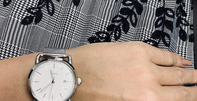 Циферблат белого цвета, стрелки покрыты люминесцентным составом, что обеспечит вам более легкое считывание информации в вечернее время.