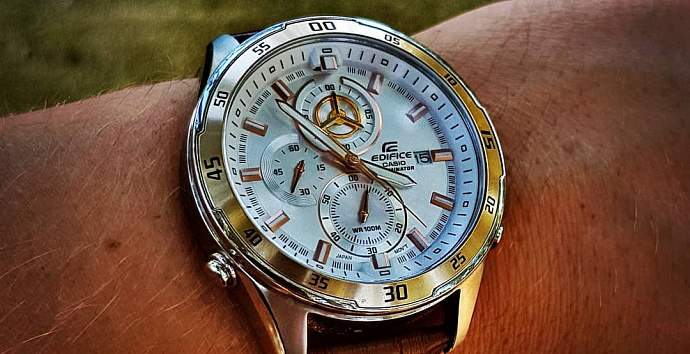Здравствуйте! Долго выбирал часы для себя и остановился на этой модели. Часы смотряться очень красиво,выделяються на руке,имеют нужный функционал: дату и секундамер( незаменим на работе) .Остался доволен покупкой.