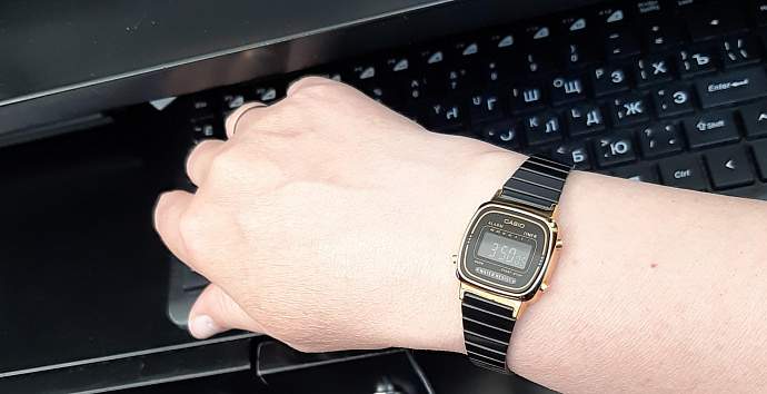 Компания CASIO представляет пополнение в линейке женских моделей из прошлого в классическом стиле Casio 80-х в модной черно-золотой расцветке. Секундомер (макс. 1 час) Точное измерение истекшего времени касанием кнопки. Дробь соответствует величине, с точностью до которой производится измерение, а число часов - максимально измеряемому времени.Отображение даты Отображение текущей даты в аналоговых часах.Полностью автоматический календарь Автоматически учитываются месяцы разной продолжительности и високосные годы.Будильник