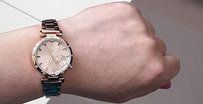 Компания Casio выпустила новую модель женской коллекции SHEEN SHE-4051 на стальном ремешке и на ремешке из искусственной кожи. Часы водонепроницаемы до 5 Бар, отображают дату и день недели. Безель и циферблат украшены кристаллами Swarovski, что делает часы еще более привлекательными.