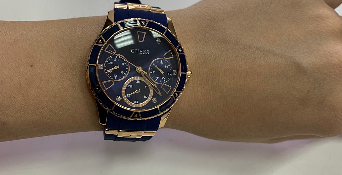 Часы любимой фильмы получила в подарок от коллектива). Очень рада такому подарку , память на всю жизнь. Классное сочетание синего и золота. Ремешок удобный, приятный к телу.